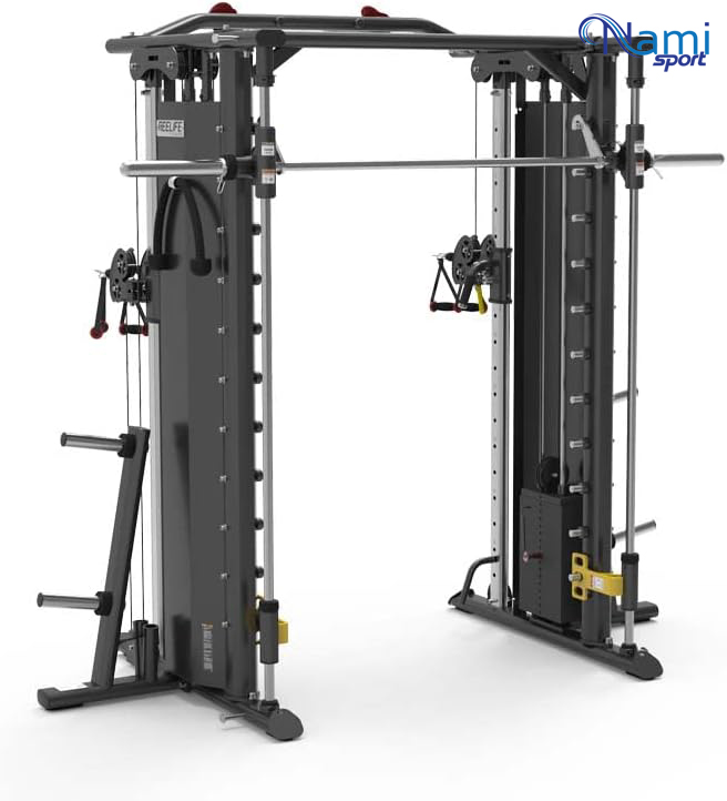 در بخش اسمیت، هالتر ثابتشده روی ریلهای عمودی حرکت میکند و به کاربر اجازه میدهد با حداکثر ایمنی حرکات اسکوات، پرس سینه، پرس سرشانه و ددلیفت را انجام دهد، بدون نیاز به اسپاتر (Spotter). در بخش کراساور نیز دو قرقره قابل تنظیم در ارتفاع مختلف قرار دارند که برای تمرینات سیمکش، قفسه سینه، جلو بازو، پشت بازو و حرکات کششی کاربرد دارند.